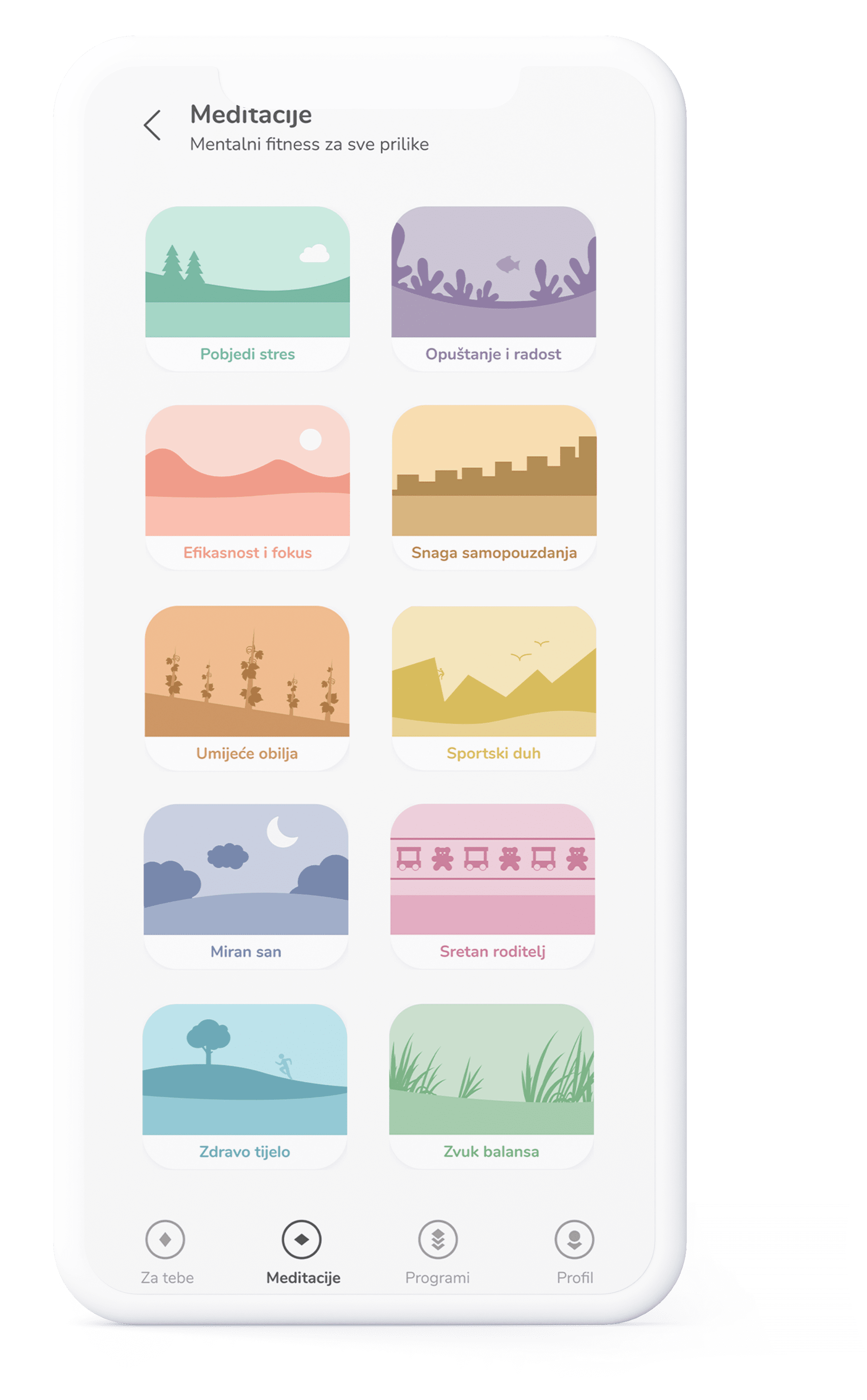 Aplikacija sadrži jedinstvene vježbe, meditacije i programe za: