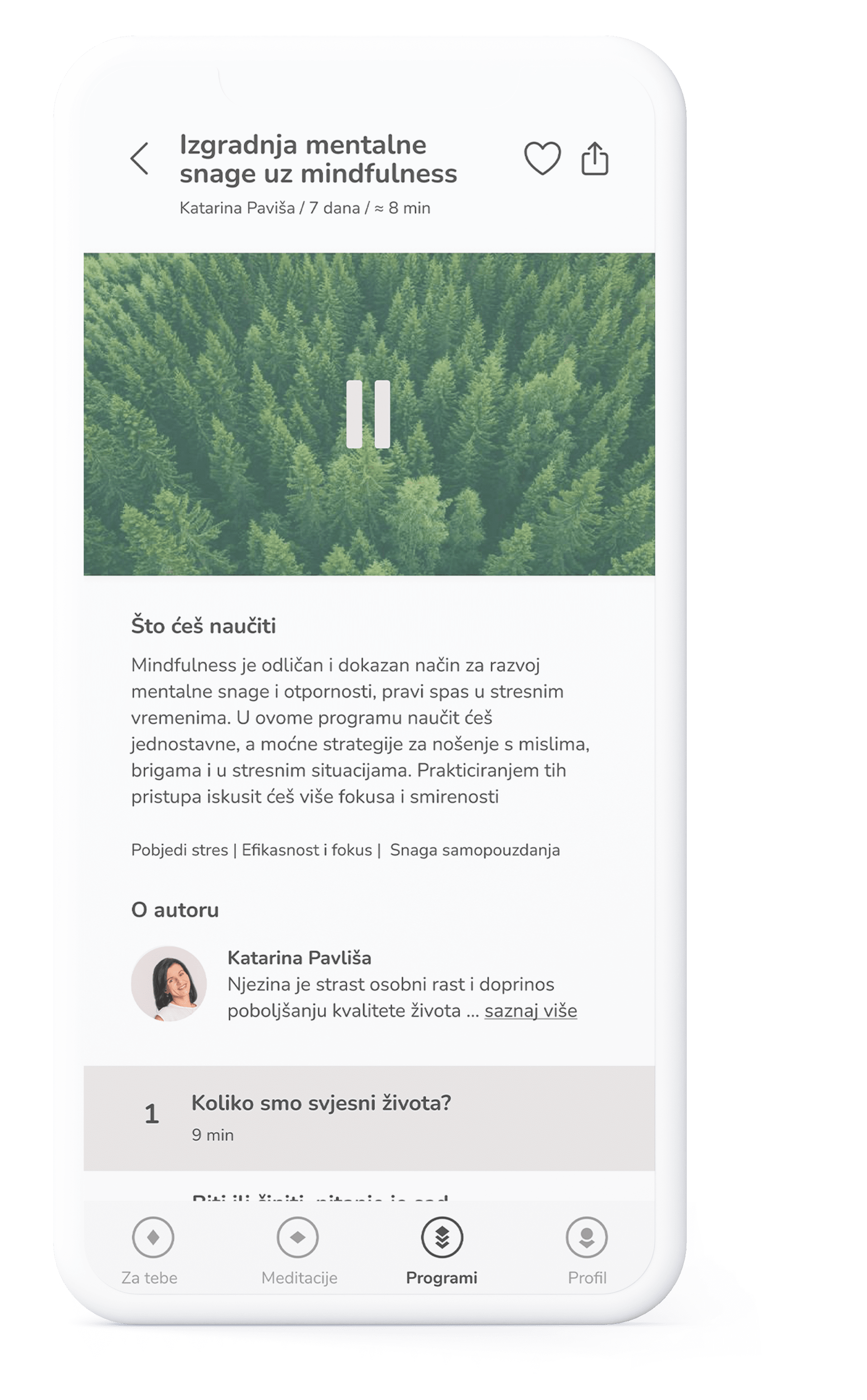 Meni je app osvijestio da uz stručnu pomoć od samo nekoliko minuta mogu s lakoćom zaspati, smiriti se pa čak i razveseliti. Jako mi se sviđa raznolikost sadržaja i autora koja mi pruža opcije da odaberem za svaku situaciju drugi pristup i sadržaj 🙂 Super mi je što sam pronašla i fizičke vježbe koje mogu raditi u uredu pa više nemam isprike 🙂 Hvala vam 🙂